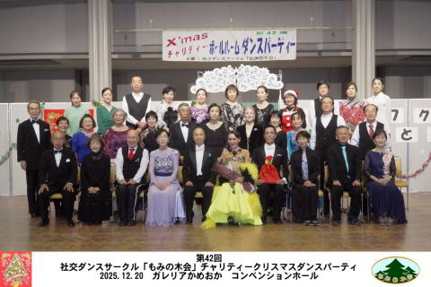 社交ダンスサークル「もみの木会」は、1983年(昭和58年)亀岡市総合福祉センターの2年連続講座、その後勤労青少年ホームの付属サークルとして3年間活動し、1988年講座終了生サークルとして設立された社交ダンス愛好者サークルです。私たちは、社交ダンスに感動と夢と仲間を求め、健康でキラリと光り輝く人生を送りたいとして活動を続けています。